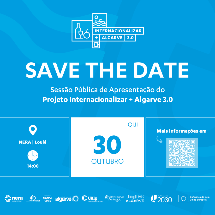 O projeto Internacionalizar + Algarve 3.0 – Promoção do Reconhecimento Internacional da Região do Algarve é desenvolvido em copromoção pelo NERA, AlgarOrange, ATA, CVA, RTA e UAlg. A iniciativa beneficia do financiamento do Programa Regional ALGARVE 2030 | Portugal 2030 e da União Europeia.