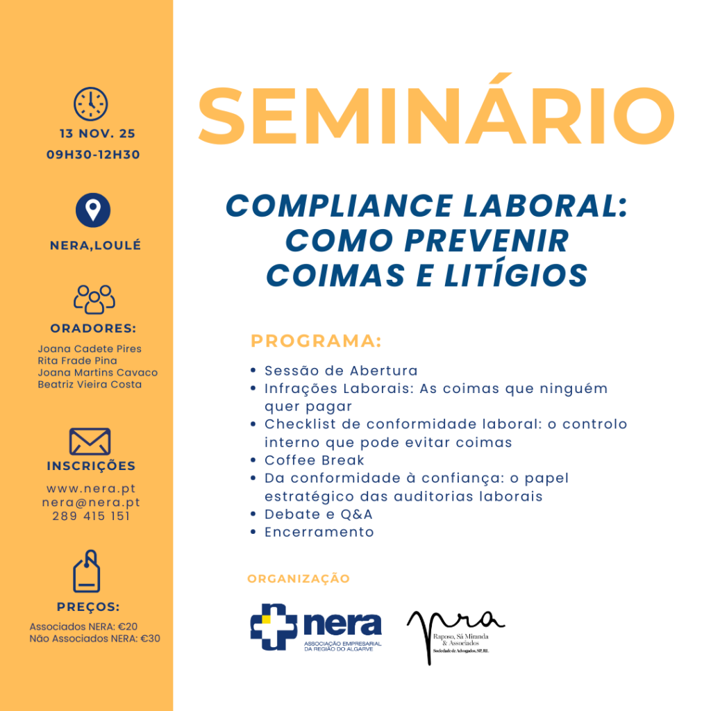 SEMINÁRIO: Compliance Laboral: Como Prevenir Coimas e Litígios| 13 de novembro